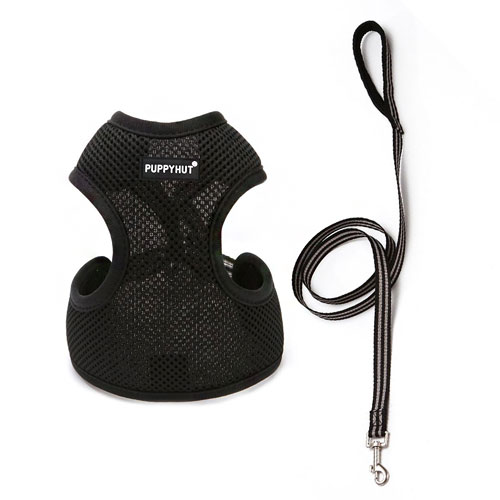 퍼피헛 간편착용 하네스 셋트 (블랙)